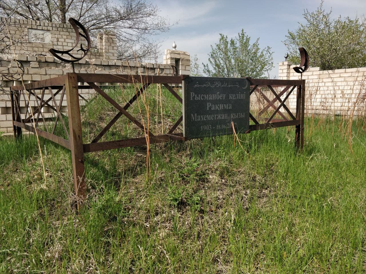 Первая – это наличие лавочки, они есть не везде. Вторая – изображение бабушки, которое хоть и не приветствуется на могиле, однако дало мне понять, что её обитательница при жизни была религиозной. Ну или как минимум чтящей традиции, которые у казахов были либо взяты из религии, либо тесно с ней переплетены.
